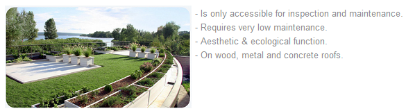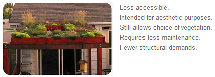 hardy, drought-tolerant vegetation. These simple intensive green roofs